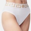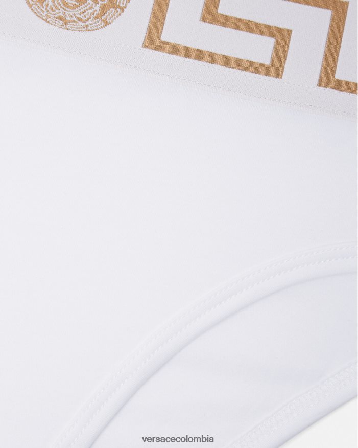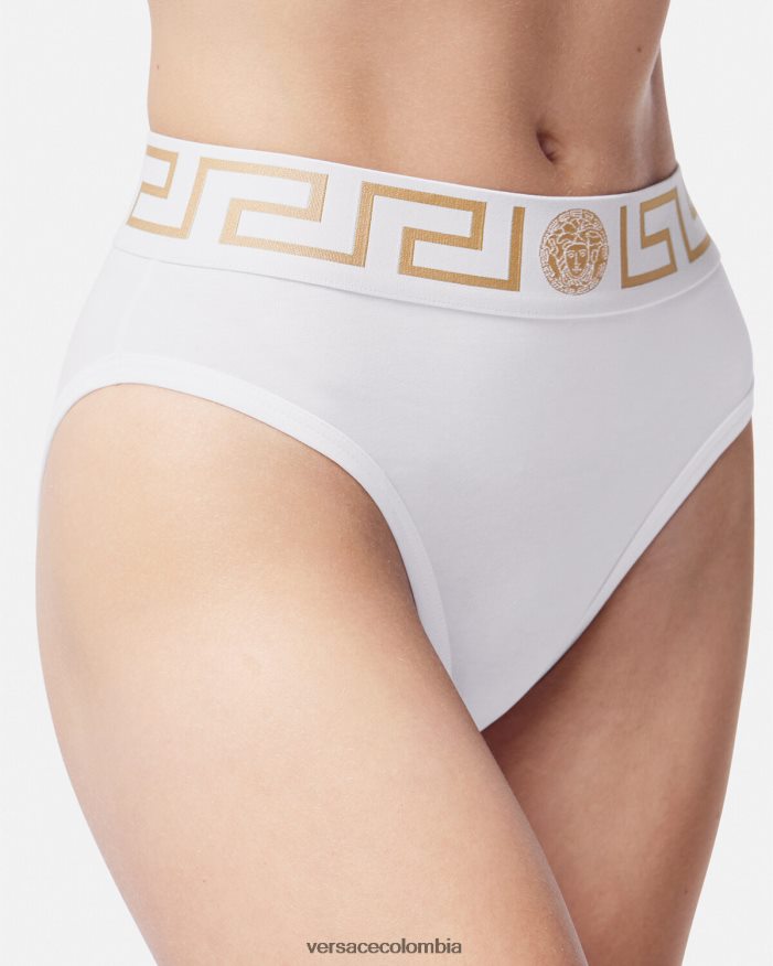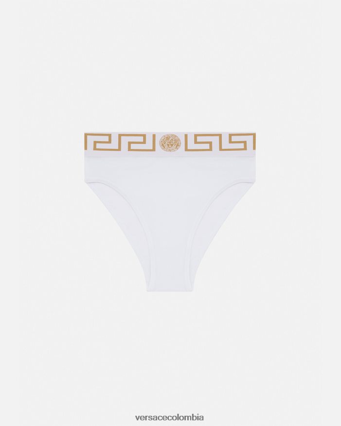 mujer calzoncillos de pernera alta con borde de Greca Versace blanco 2RP40F1056 ropa interior y ropa de playa