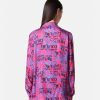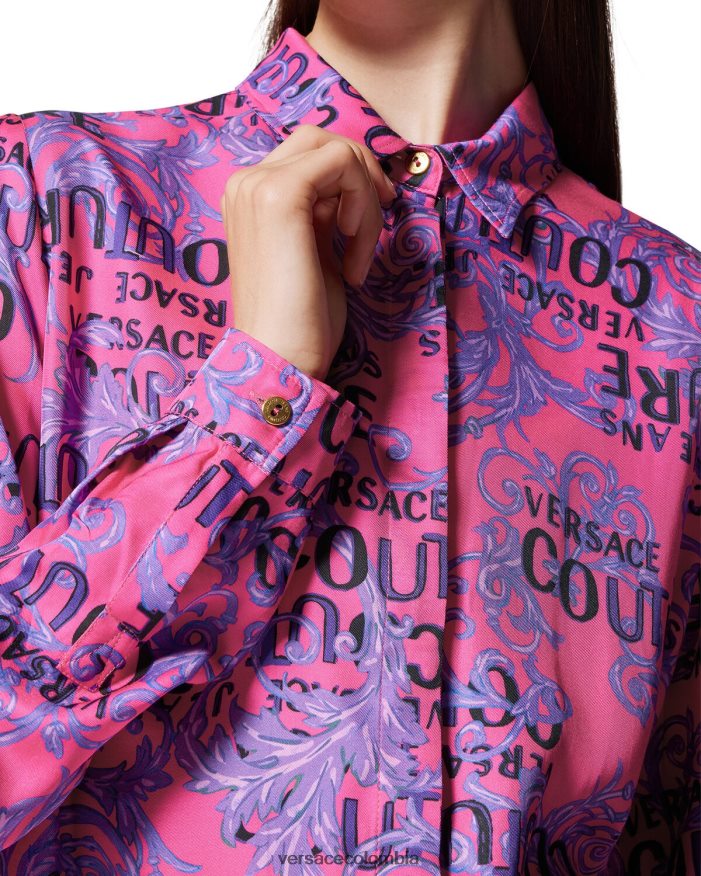 Una camisa fluida de manga larga con el logo de alta costura estampado por toda la prenda.