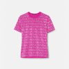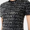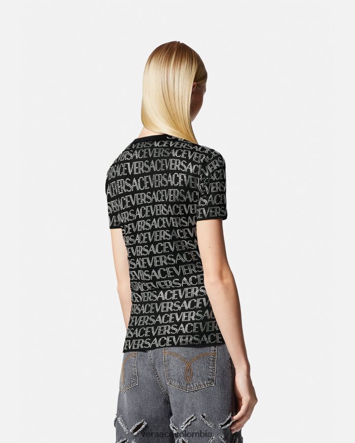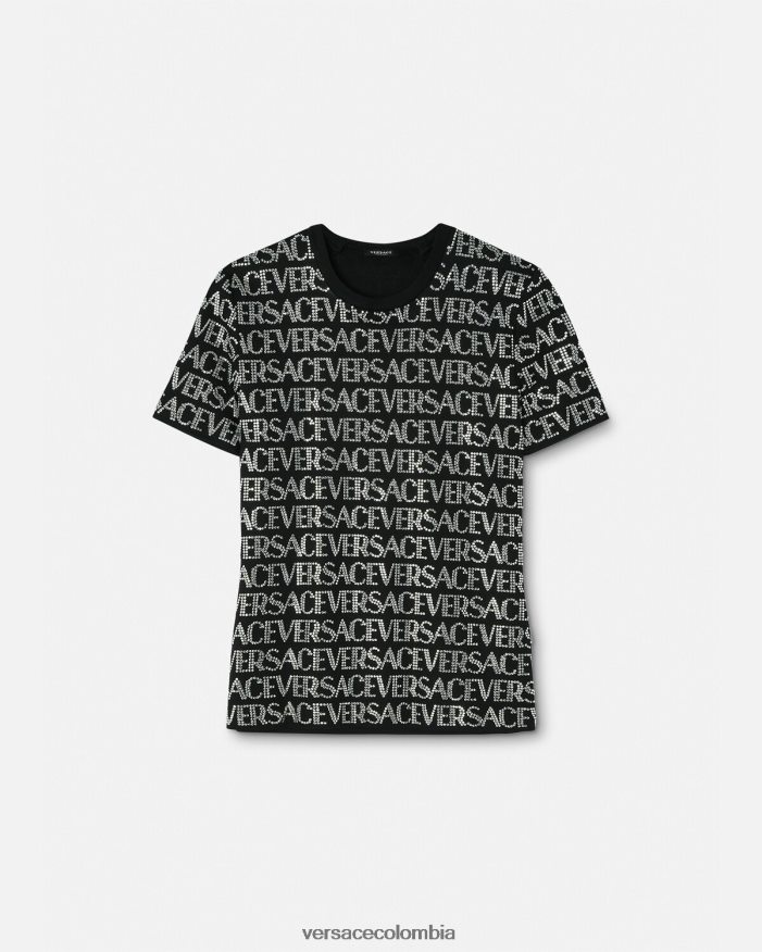 Confeccionada con punto de algodón, esta camiseta de manga corta presenta un motivo del logo de Versace adornado con cristales en toda la prenda.