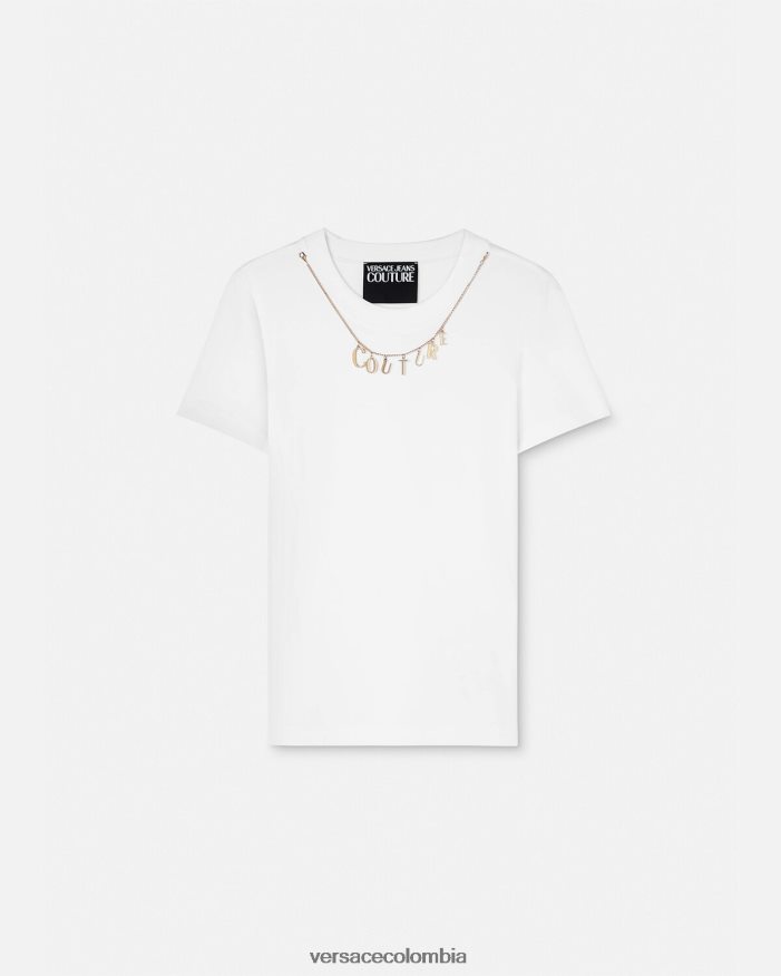 una camiseta de algodón de manga corta con una cadena de dijes “alta costura” extraíble en el cuello redondo.