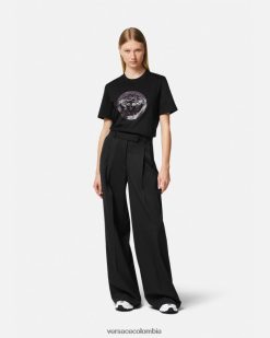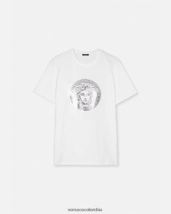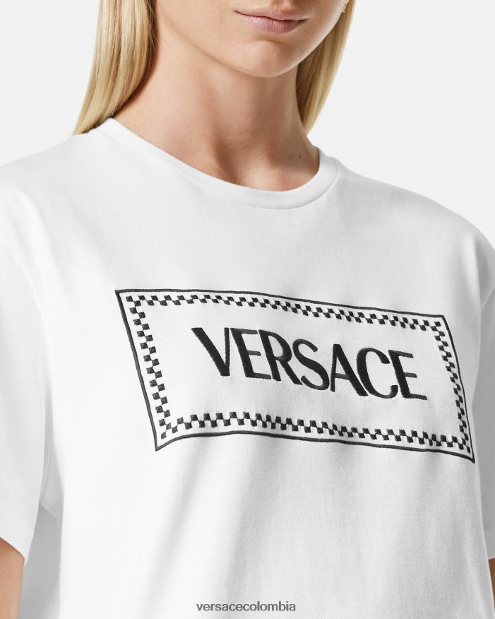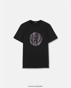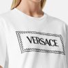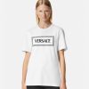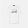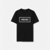 Una camiseta de algodón de manga corta con el logo de Versace bordado en la parte delantera.