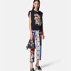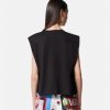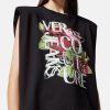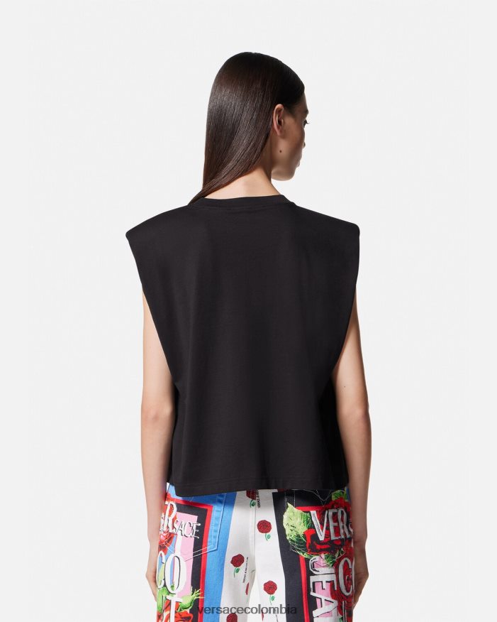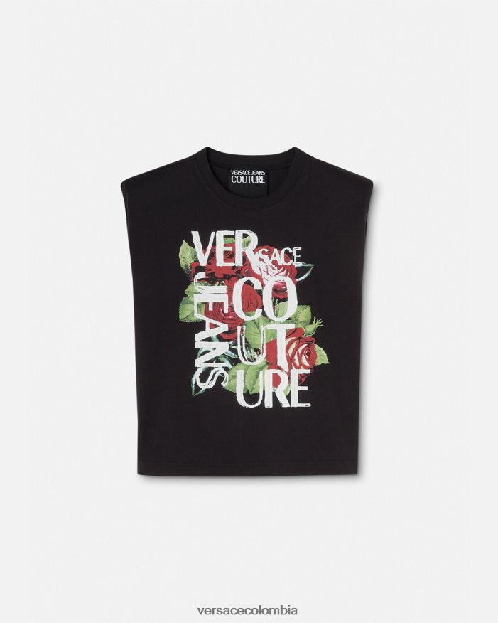 una camiseta de algodón sin mangas con hombros acolchados y un logo de rosas estampado.