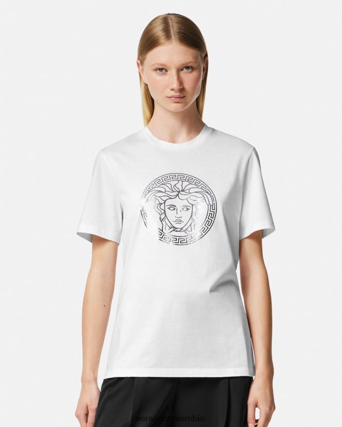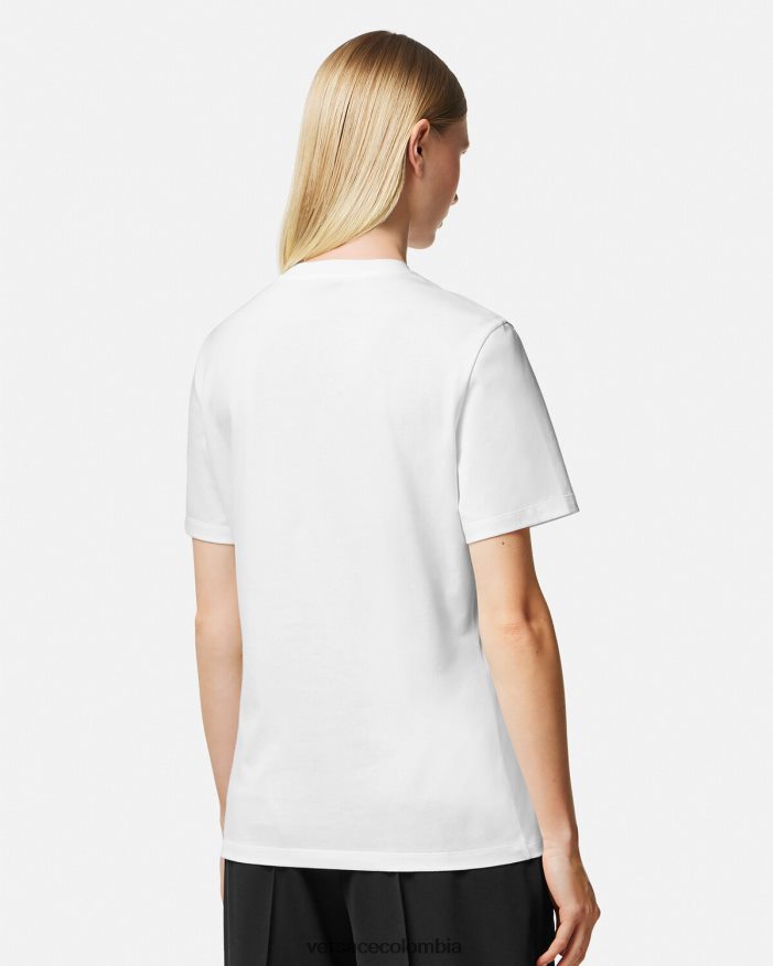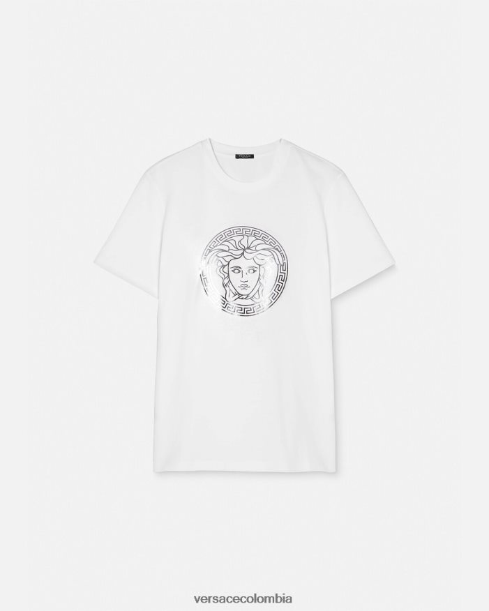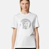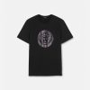 Esta camiseta de manga corta de punto de algodón tiene un ajuste relajado y presenta un motivo de medusa con acabado metálico en la parte delantera.