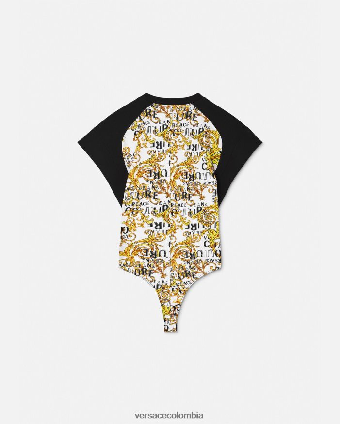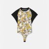 Esta camiseta tipo body de manga corta está confeccionada en punto de algodón y presenta un estampado de logotipo de alta costura en la parte delantera y trasera con mangas anchas.