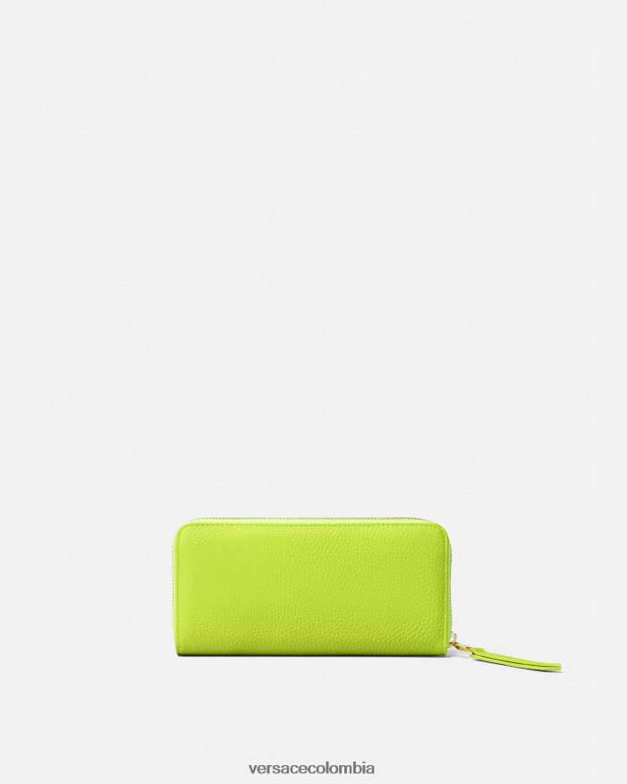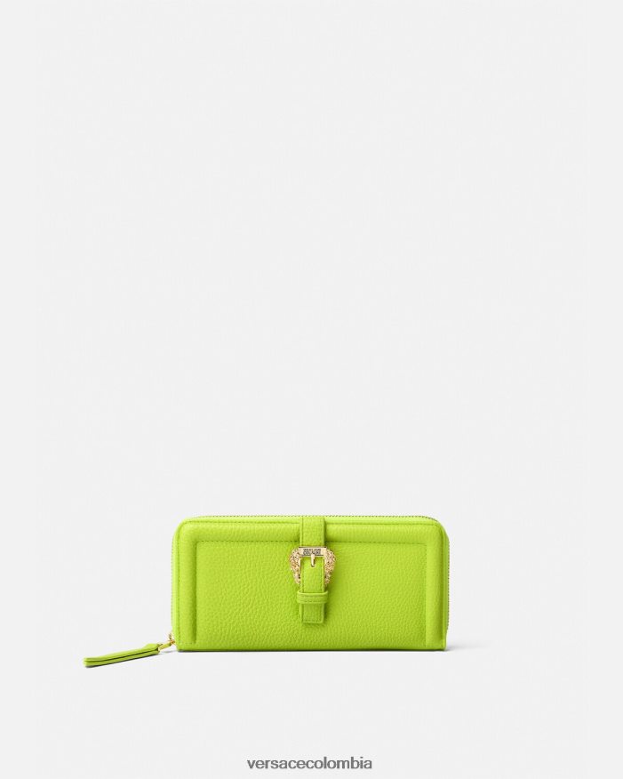 una cartera continental con múltiples compartimentos y una hebilla barroca en la parte delantera.