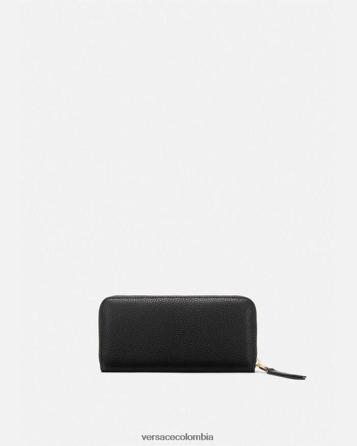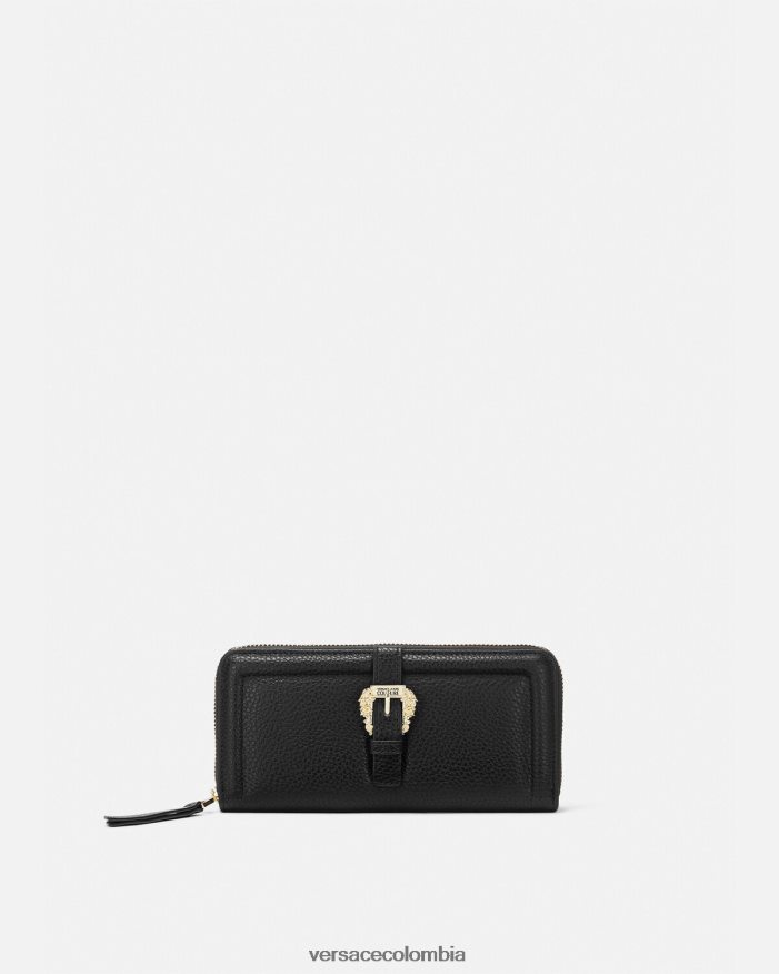 una cartera continental con múltiples compartimentos y una hebilla barroca en la parte delantera.
