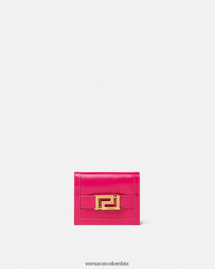 Confeccionada en cuero, esta cartera plegable con Greca Goddess está realzada por la cadena Greca con múltiples ranuras internas para tarjetas, un compartimento para billetes y un monedero.