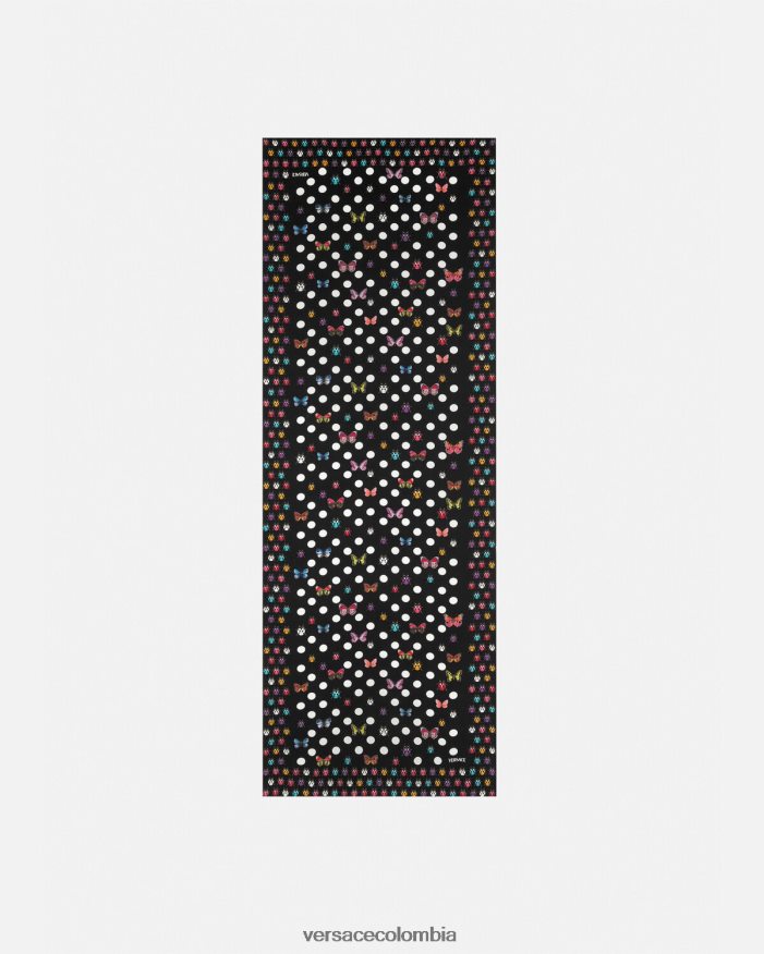 un chal de sarga de seda con lunares que presenta un patrón de archivo renovado de los años 90 con mariposas y mariquitas por todas partes. Este artículo forma parte de la colección cápsula codiseñada con Dua Lipa.