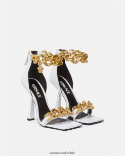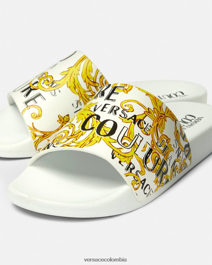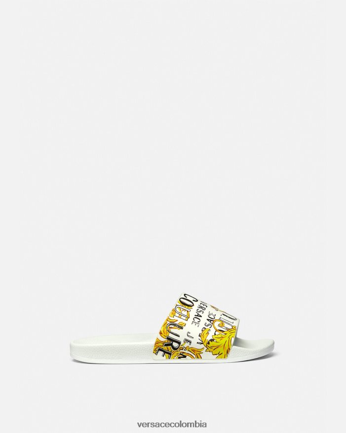 mujer chanclas Shelly de alta costura con logo Versace oro y blanco 2RP40F2309 zapato