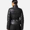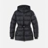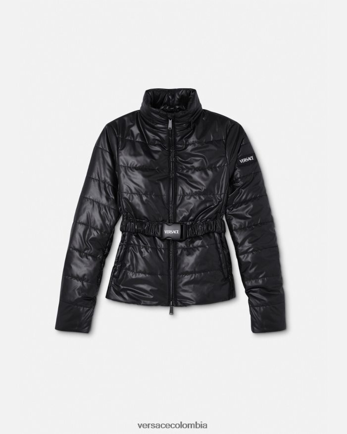 Confeccionada con una capa exterior de nailon acolchado, esta chaqueta acolchada tiene una cintura elástica con cinturón y hebilla con logo. El cuello alto oculta una capucha ligera y se completa con cordones metálicos de Medusa en el mismo tono.