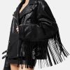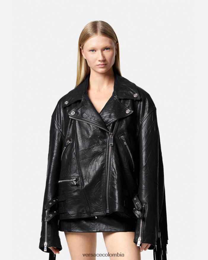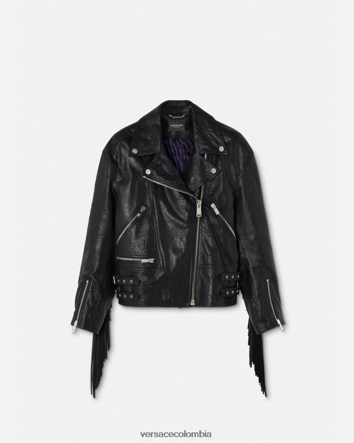 mujer chaqueta de cuero con flecos Versace negro 2RP40F101 ropa