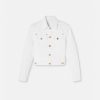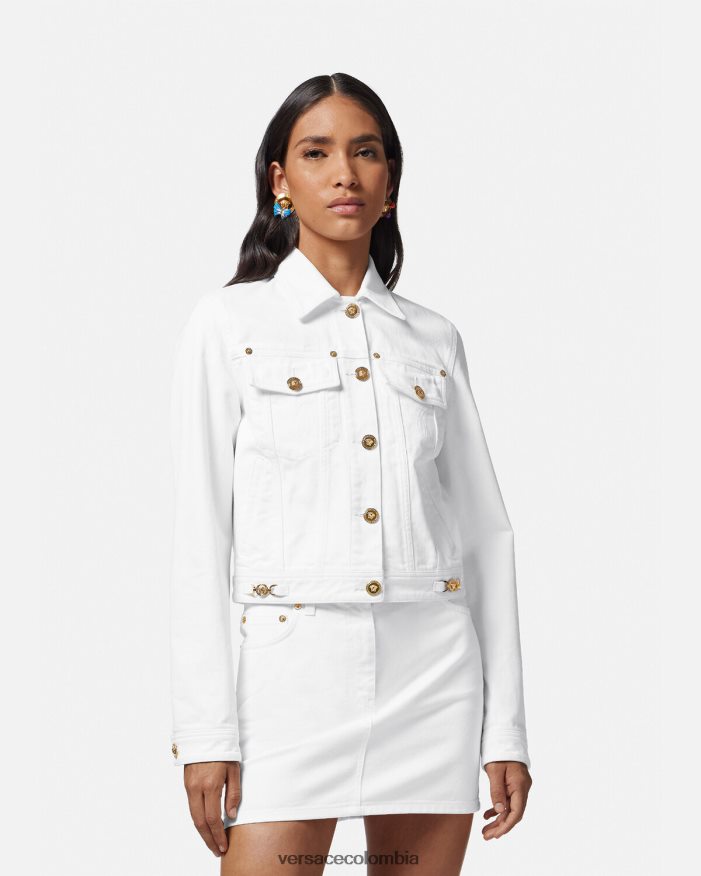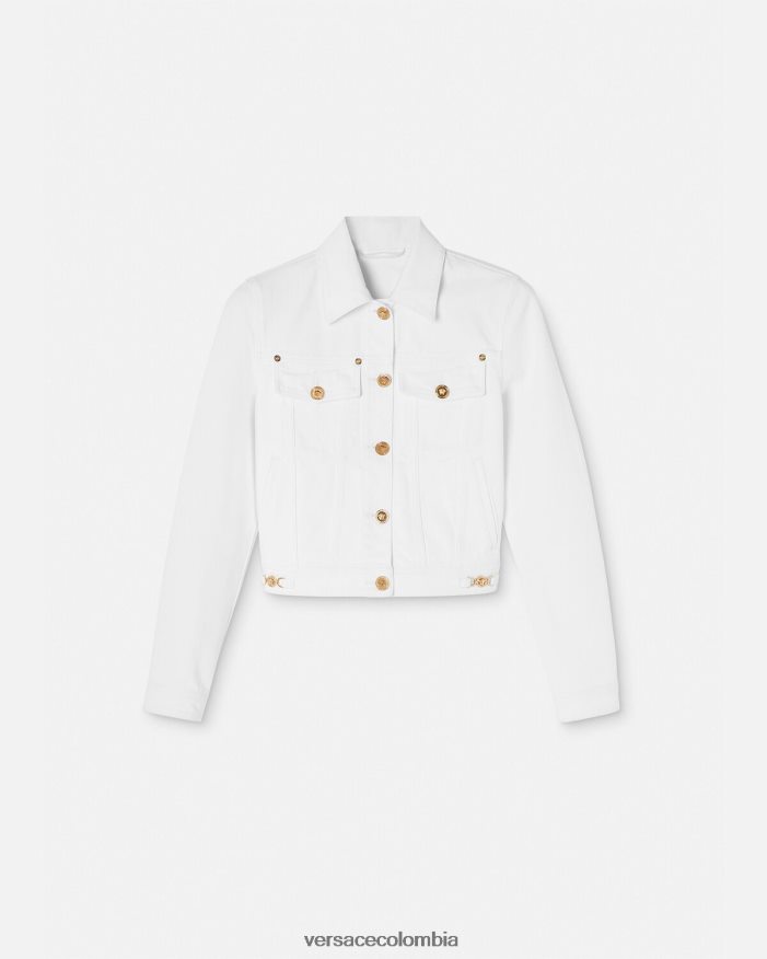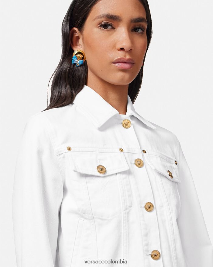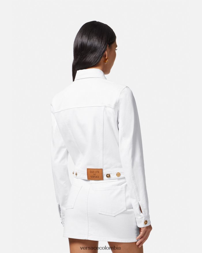 Dua Lipa es la diseñadora invitada de la colección cápsula Dua Lipa x Versace, realizada en colaboración con Donatella Versace. Esta chaqueta vaquera está realzada por piezas metálicas de Medusa ’95 en la cintura y un cierre frontal con botones de Medusa.