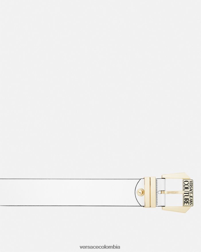Confeccionado en cuero liso, este cinturón presenta una hebilla con el logo grabado, dos presillas decorativas y herrajes en forma de V en la punta.