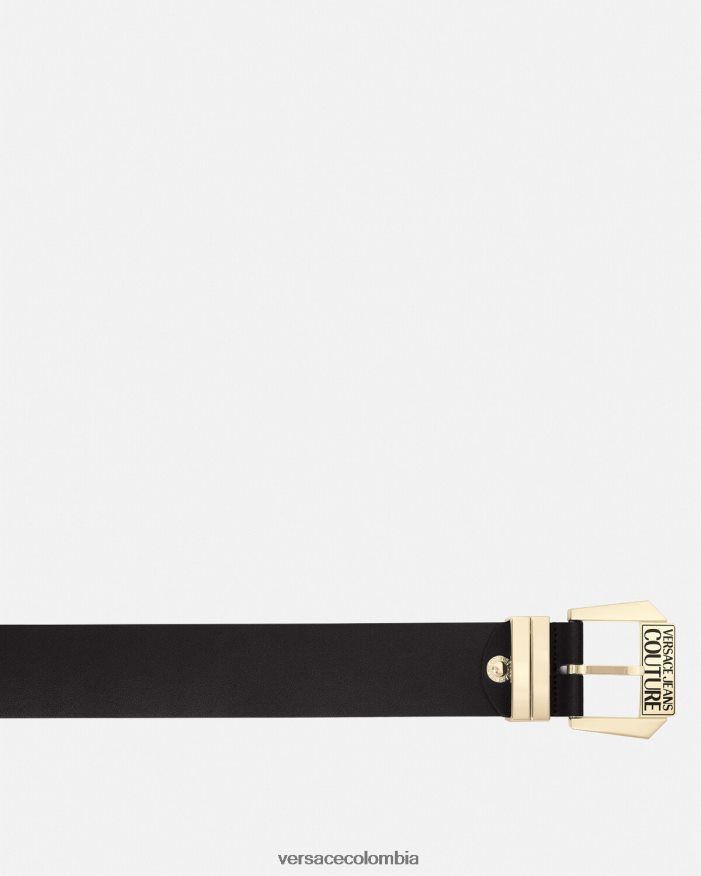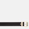 Confeccionado en cuero liso, este cinturón presenta una hebilla con el logo grabado, dos presillas decorativas y herrajes en forma de V en la punta.