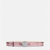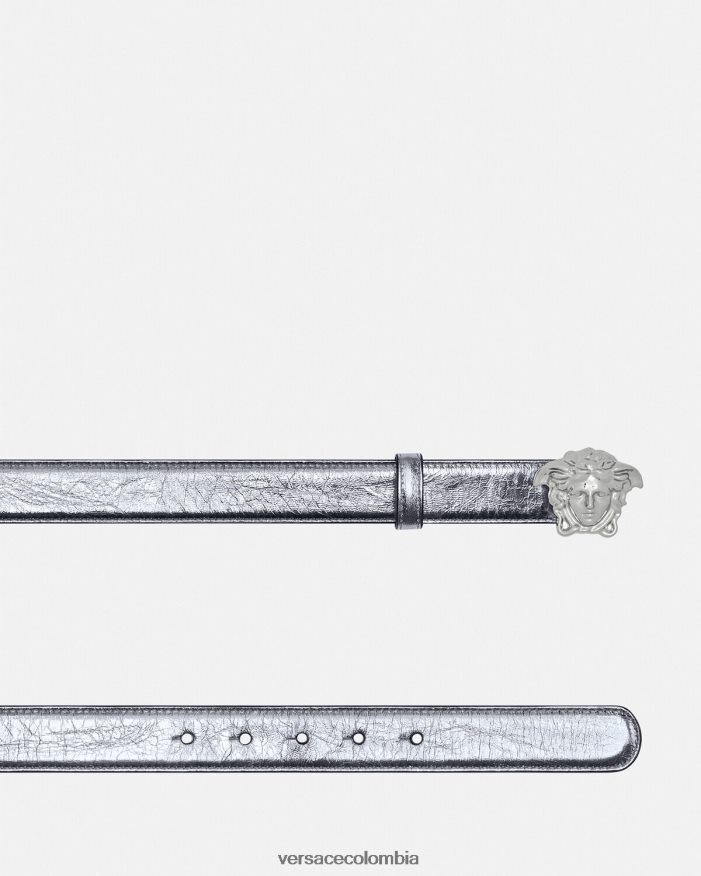 Este cinturón de cuero metálico presenta la exclusiva hebilla de La Medusa.
