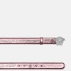 Este cinturón de cuero metálico presenta la exclusiva hebilla de La Medusa.
