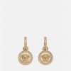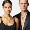 un collar adornado con cristales con un dije de medusa y una cadena con greca. Todos los productos de joyería de Versace no contienen plomo ni níquel. Todos los materiales son hipoalergénicos.