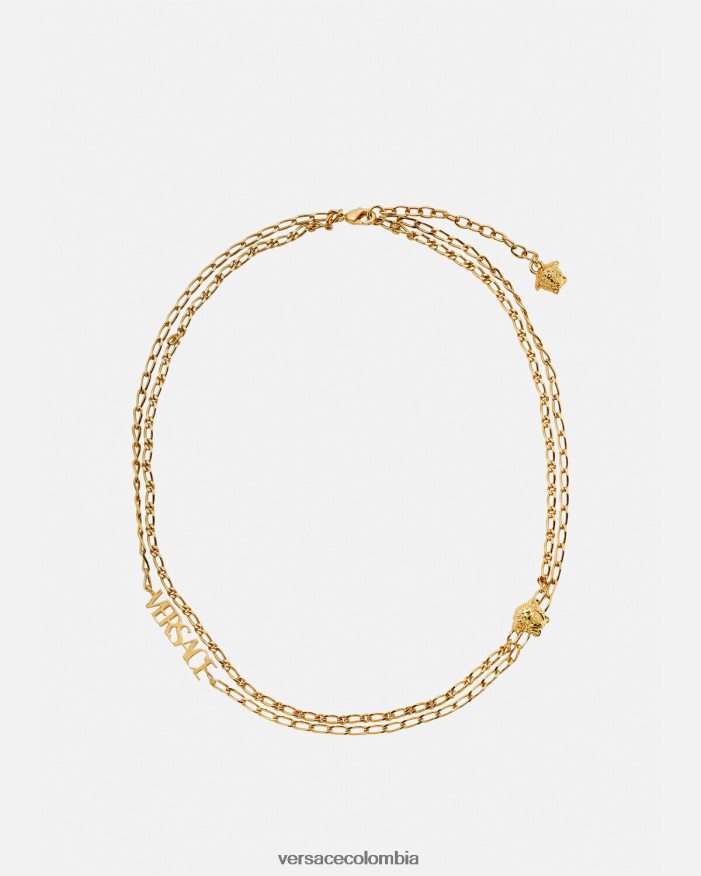 Este collar de doble cadena entrelazada presenta letras de Versace y los característicos dijes de Medusa. Todos los productos de joyería de Versace no contienen plomo ni níquel. Todos los materiales son hipoalergénicos.