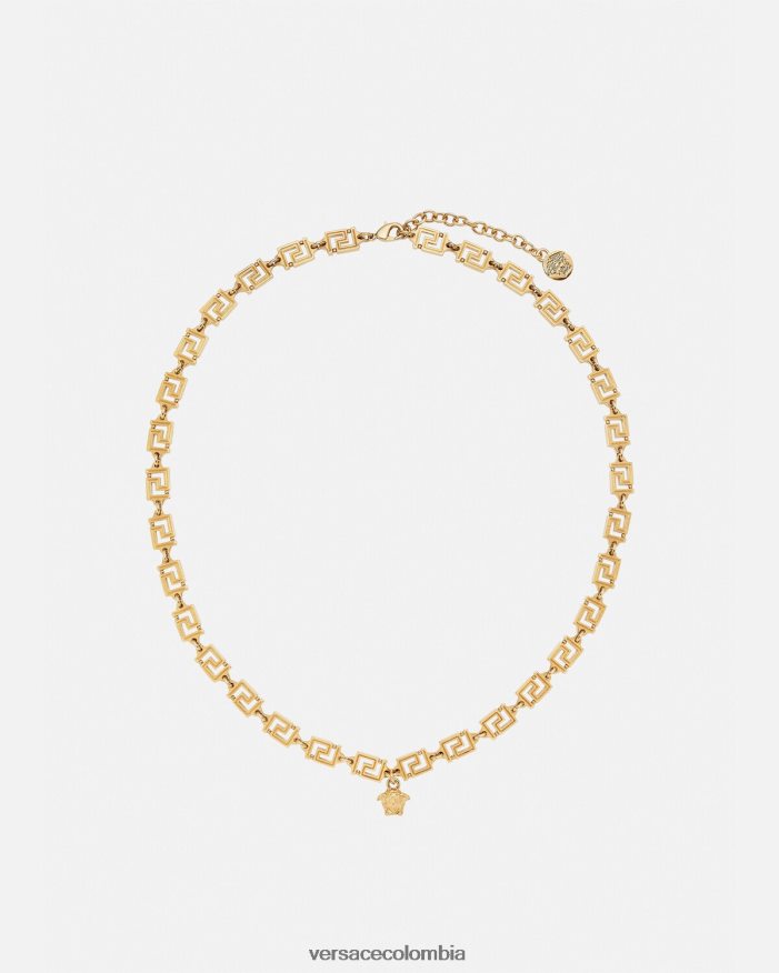 un collar con greca calado y un pequeño charm de medusa. Todos los productos de joyería de Versace no contienen plomo ni níquel. Todos los materiales son hipoalergénicos.