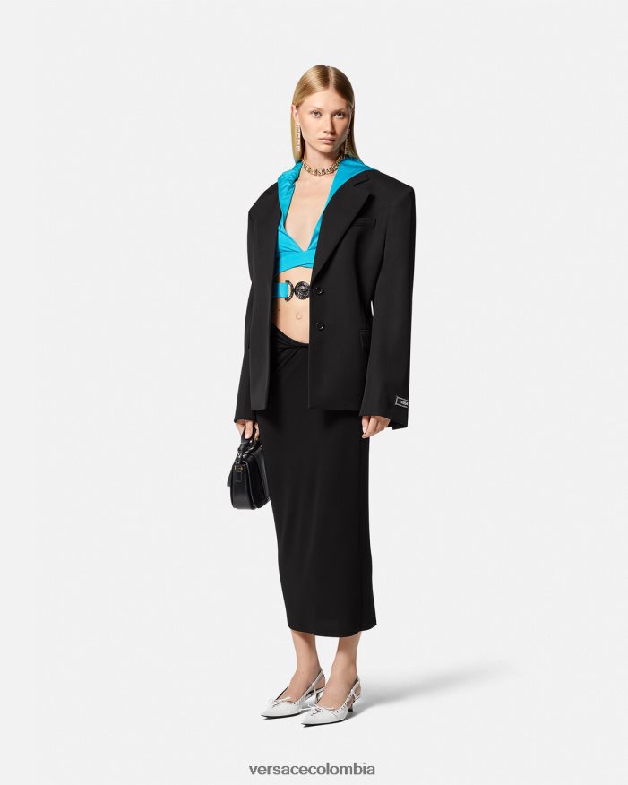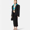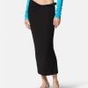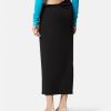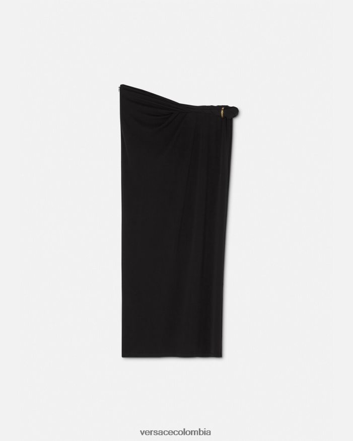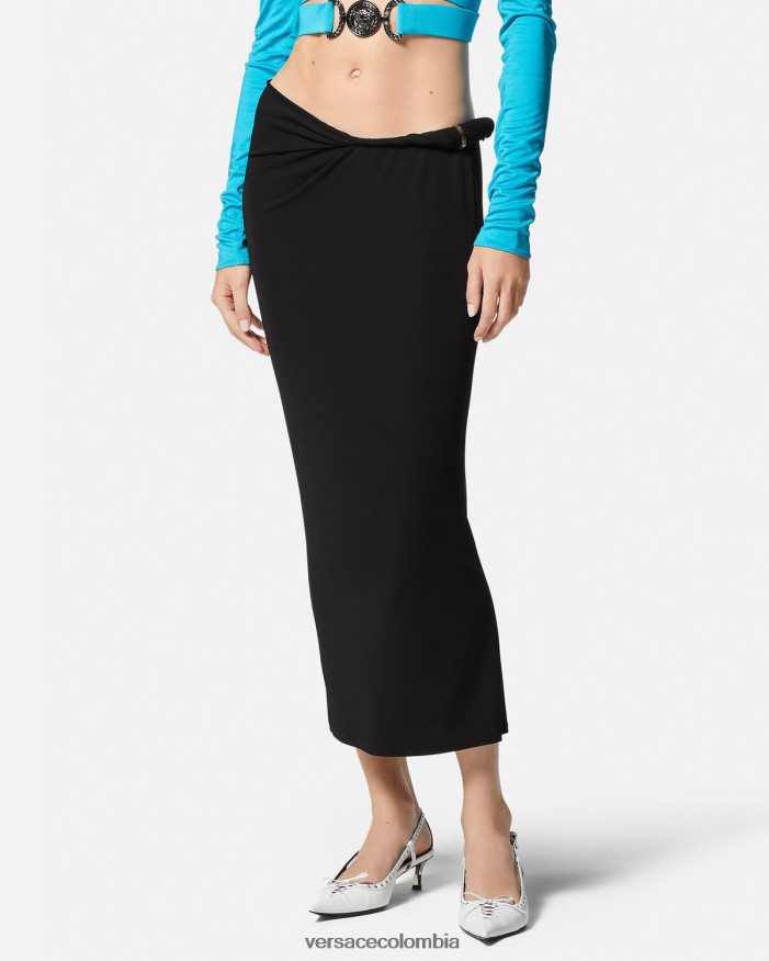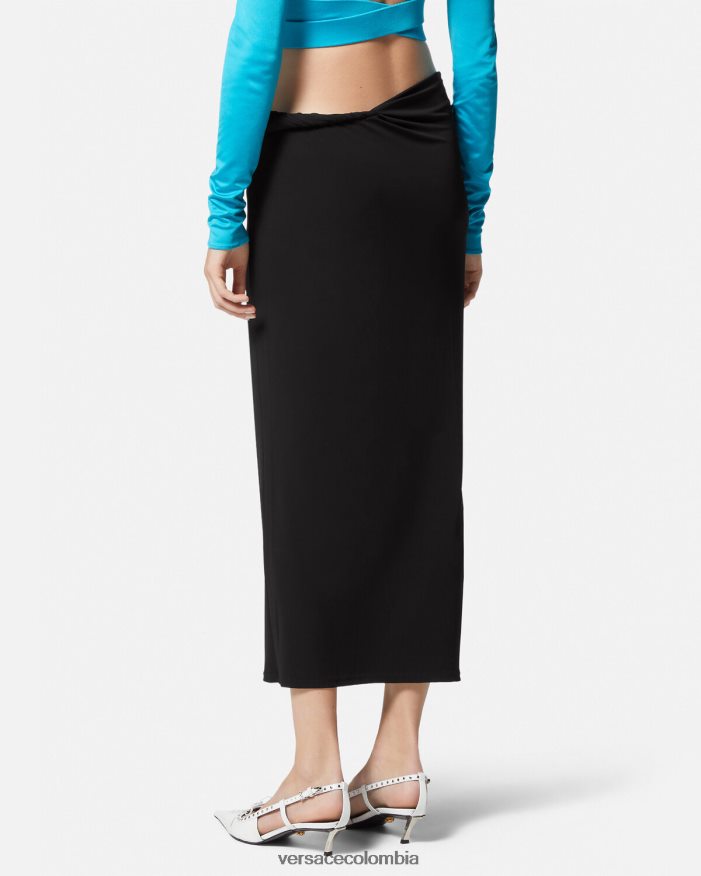 Confeccionada en un tejido de punto fluido, esta falda de tubo presenta un detalle acolchado y enrollado en la cintura, acentuado por un pasador de greca