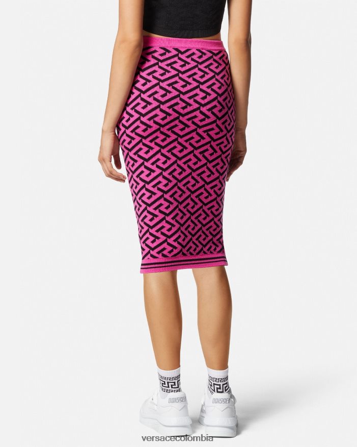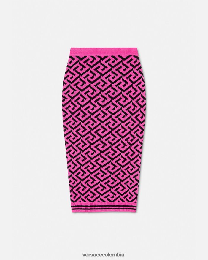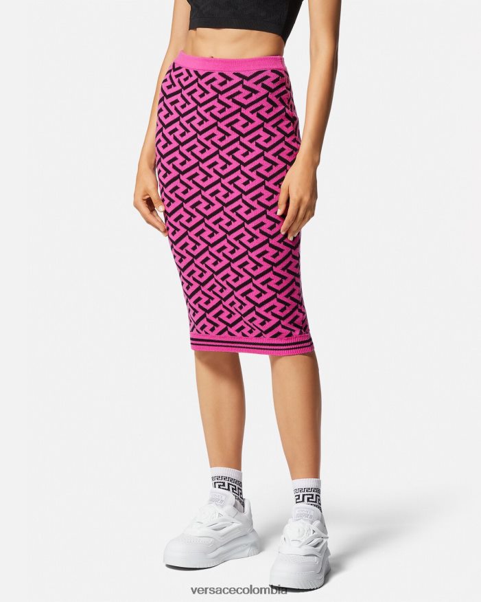 Esta falda de tubo midi, confeccionada en una mezcla de lana, presenta un patrón de La Greca en jacquard y un acabado con ribetes acanalados.