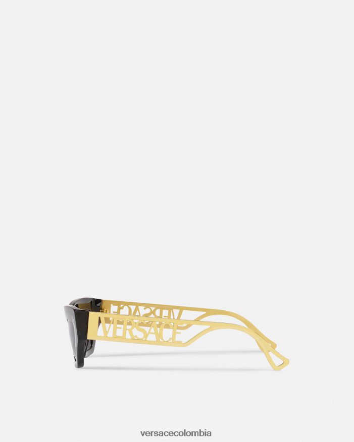 mujer Gafas de sol estilo ojo de gato con logo vintage de los años 90 Versace oro negro 2RP40F615 accesorios