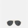 Estas gafas de sol estilo aviador Medusa Biggie tienen monturas finas de metal, detalladas con un puente nasal doble y piezas metálicas de Medusa en las patillas.