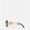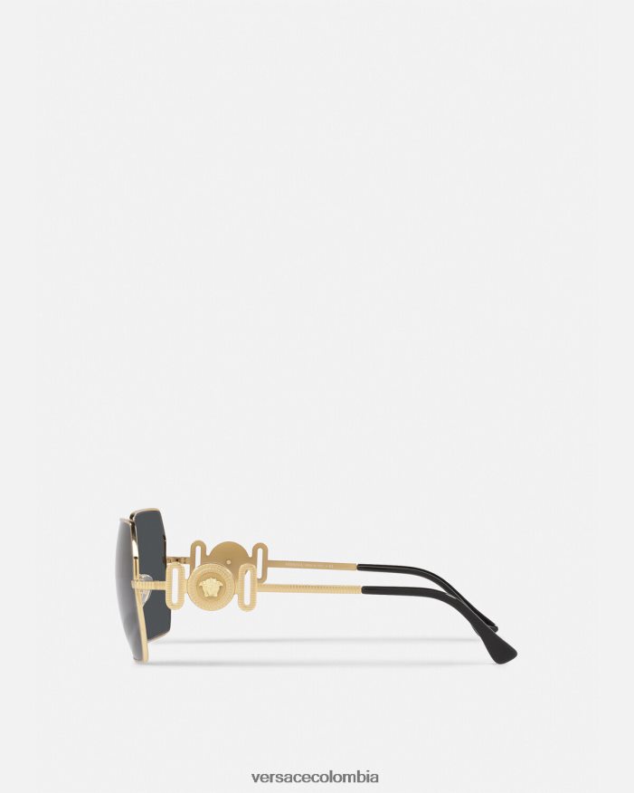 Estas gafas de sol heptágono Medusa Biggie tienen monturas finas de metal, detalladas con un puente nasal y piezas metálicas de Medusa en las patillas.