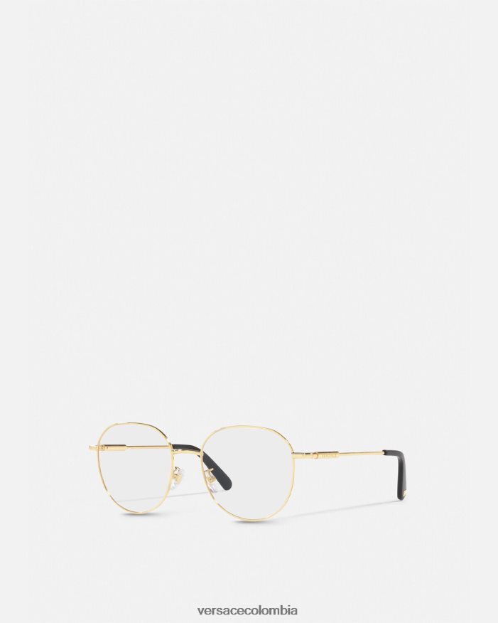 Estas gafas ópticas redondas tienen finas monturas de metal, detalladas con un logotipo grabado en las patillas y herrajes de medusa en las puntas de las patillas.