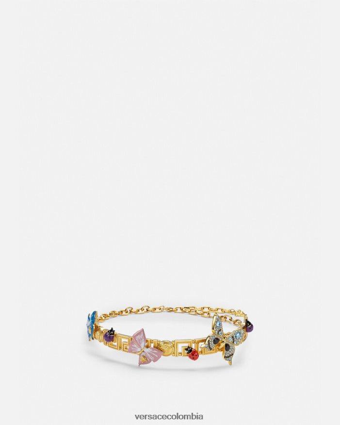 versace presenta dua lipa x versace, una colección cápsula codiseñada con dua lipa. una gargantilla rígida con un motivo de greca con mariposas y mariquitas esmaltadas y cristalinas con un emblema central de medusa. Cada pieza es única y puede variar ligeramente de la imagen mostrada debido a su calidad aplicada y pintada a mano. Todos los productos de joyería de Versace no contienen plomo ni níquel. Todos los materiales son hipoalergénicos.