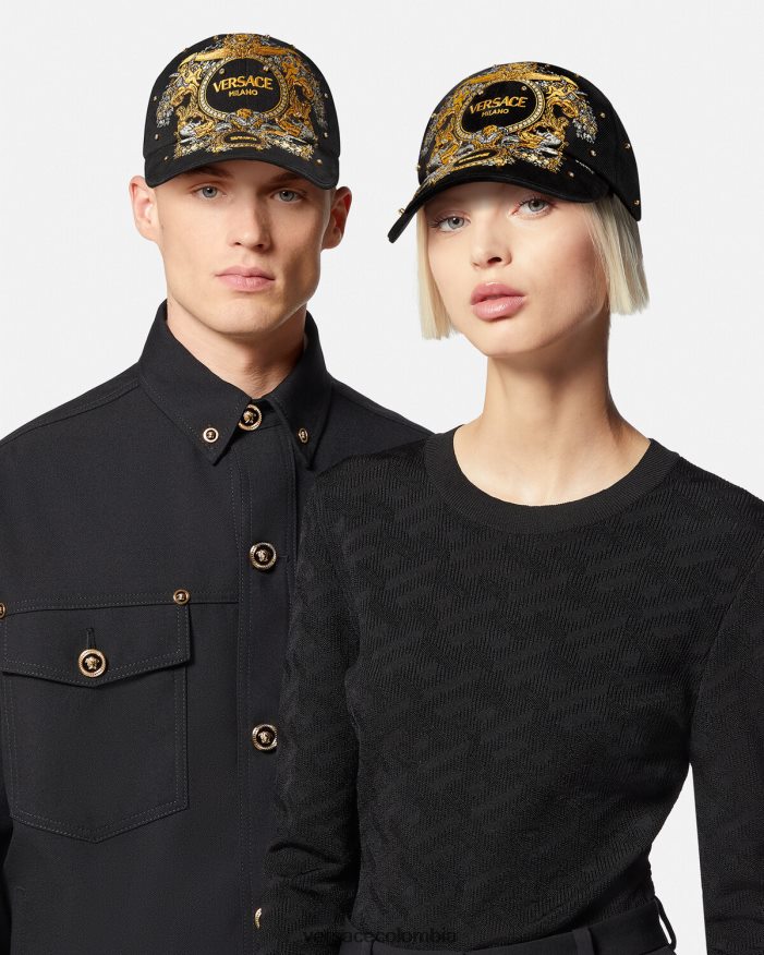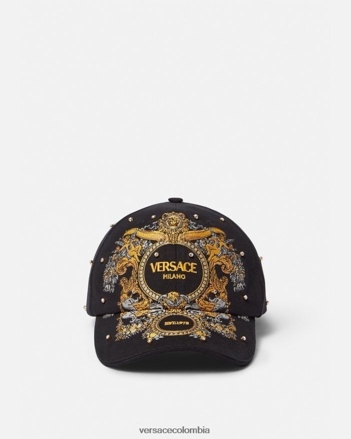 Esta gorra de béisbol de lona presenta un motivo barroco bordado, inspirado en un diseño de archivo de la gira de Elton John. Una versión moderna de los códigos masculinos, este modelo está realzado por una rejilla de cristal y tiene una correa ajustable en la parte posterior.