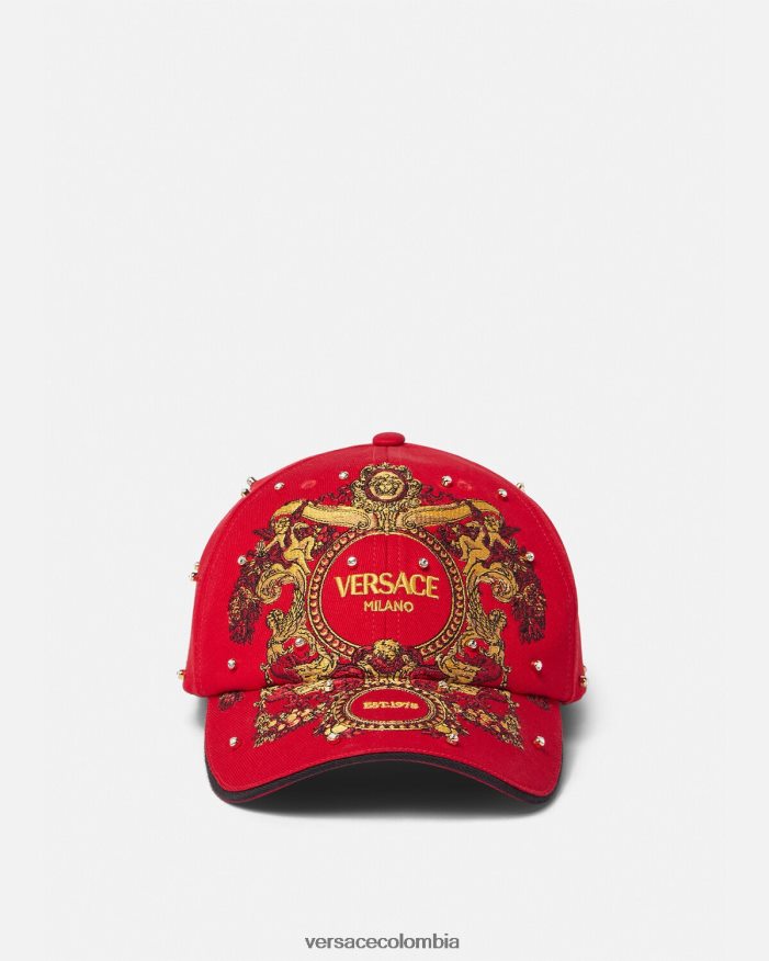 mujer gorra de béisbol con rejilla de cristal barroco Versace rojo 2RP40F909 accesorios