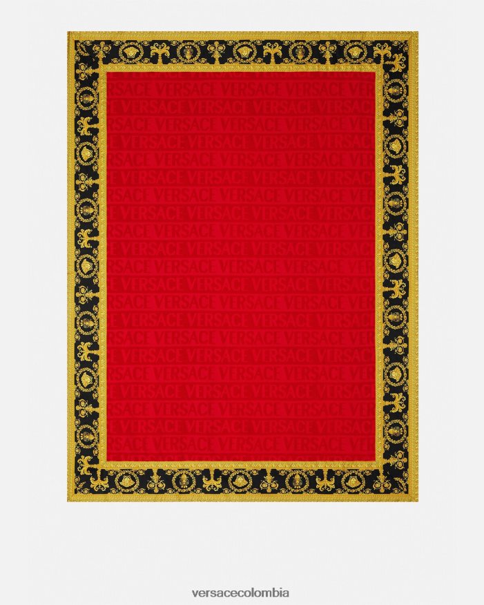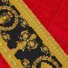 una lujosa toalla de playa de felpa de algodón suave que presenta un motivo tonal de versace en toda la prenda con bordes en contraste con estampado barroco.
