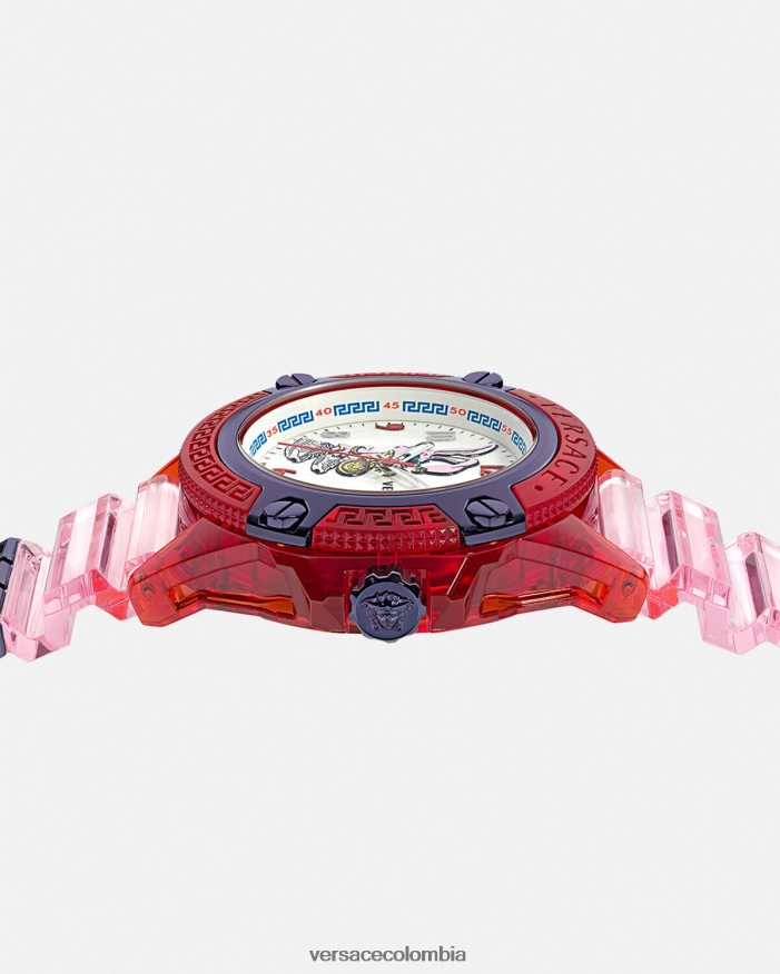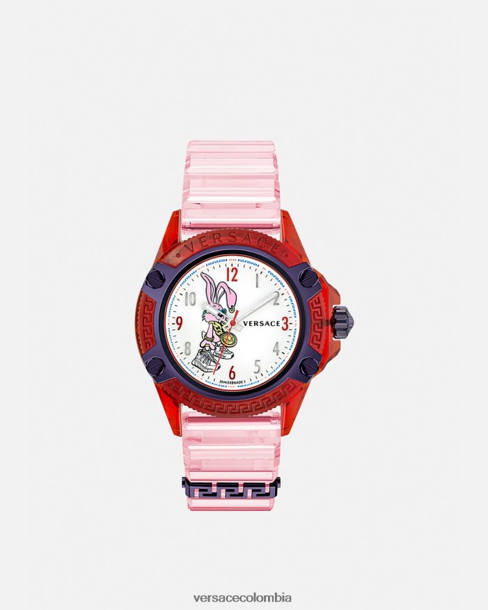 - esfera: esfera blanca con números árabes; logotipo de versace a las 3h; índices coloreados a las 3h, 6h, 9h, 12h; año nuevo lunar 2023 biggie bunny