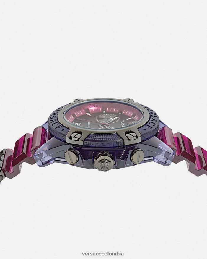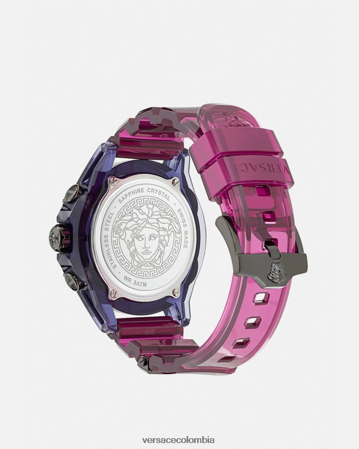 El reloj Icon Active es un reloj moderno y deportivo con elementos transparentes y de colores. Con la medusa y el logotipo de Versace a las 12 en punto, una trabilla de greca acentúa la banda de metal. Viene en una caja de presentación de medusa. Todos los relojes Versace están garantizados por la marca “fabricación suiza”.