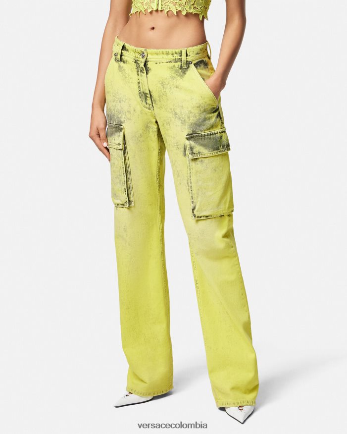 mujer jeans cargo desgastados Versace amarillo 2RP40F225 ropa