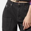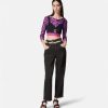 Estos jeans ajustados presentan un diseño de cinco bolsillos con un cinturón con hebilla barroca recortada en la cintura.