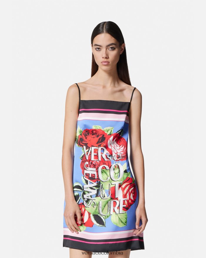 mujer mini vestido de rosas Versace azul claro 2RP40F2159 ropa