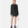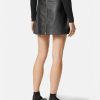 Esta minifalda micro, con un diseño vanguardista y femenino, está confeccionada en piel de cordero flexible y adornada con una tachuela de Medusa característica en la cintura y un cierre de cremallera acentuado en la parte trasera.