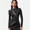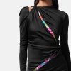 Dua Lipa es la diseñadora invitada de la colección cápsula Dua Lipa x Versace, realizada en colaboración con Donatella Versace. Este vestido asimétrico de manga larga tiene una manga recortada, detalles de nudos drapeados e inserciones con estampado floral veraniego.