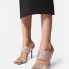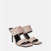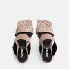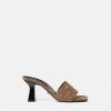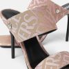 Estas mules con puntera abierta presentan un estampado integral de jacquard de Versace en lona y cuentan con tacones altos.