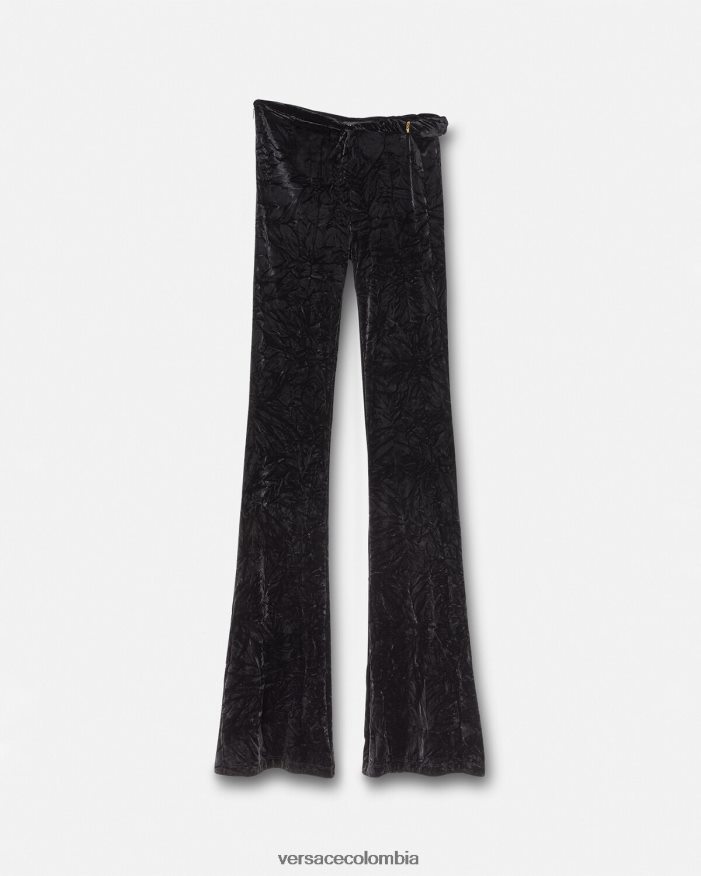 mujer pantalones acampanados de terciopelo enrollados Versace negro 2RP40F216 ropa