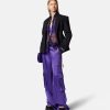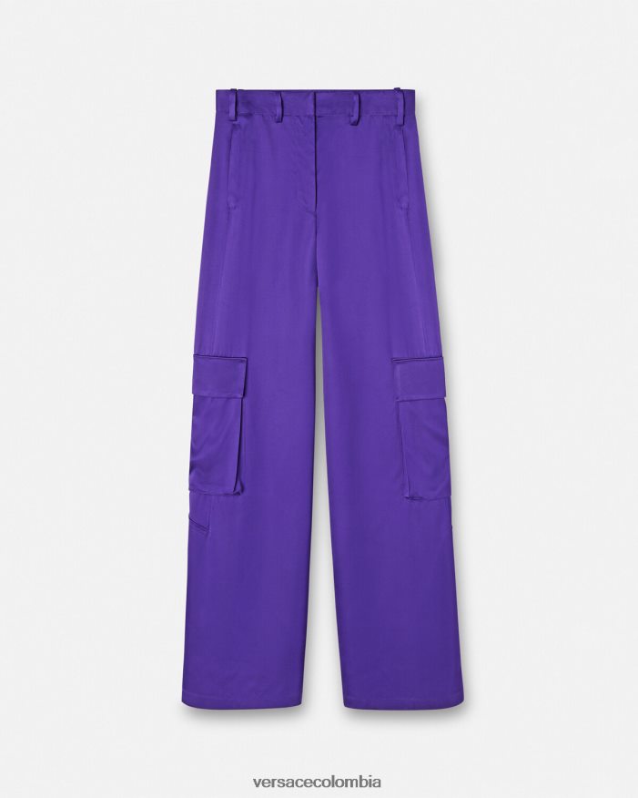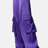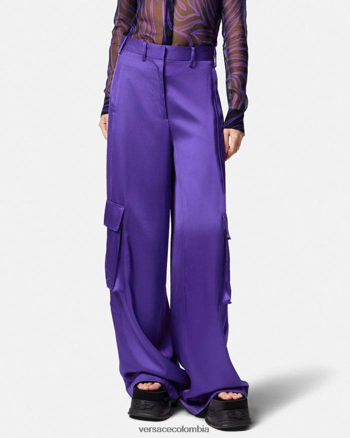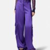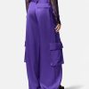 Pantalón cargo ancho con acabado satinado fluido y bolsillo trasero con cremallera.