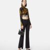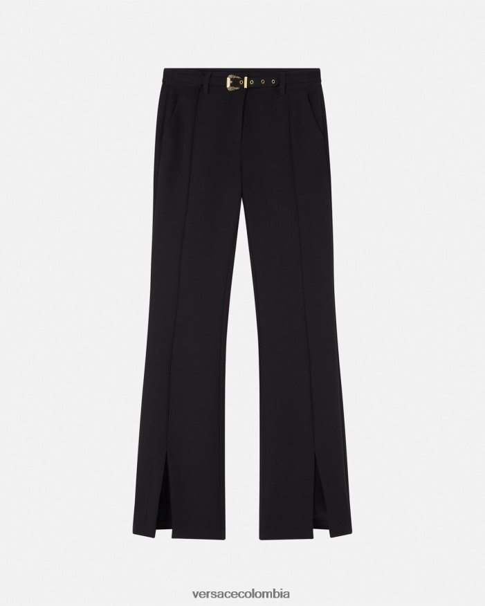 Con la hebilla de alta costura barroca1 en la cintura, estos pantalones están confeccionados con una tela que realza la figura y que resalta en la parte inferior con acabados con aberturas.