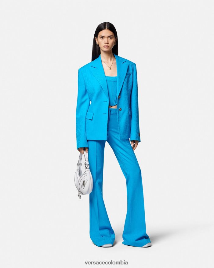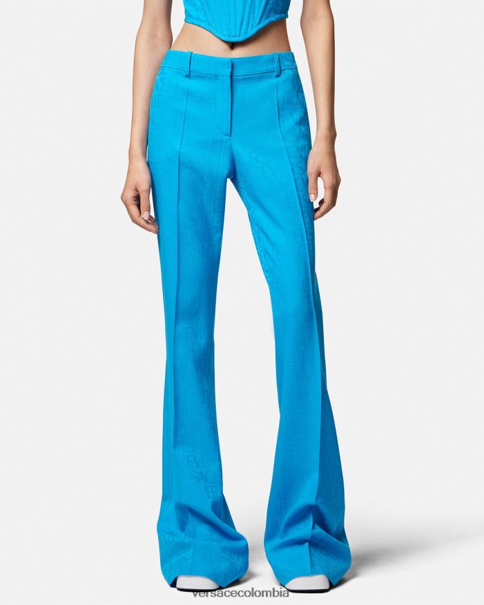 Estos pantalones formales están confeccionados en lana y presentan un patrón integral de jacquard versace tonal. El estilo entallado se puede llevar con un blazer a juego.