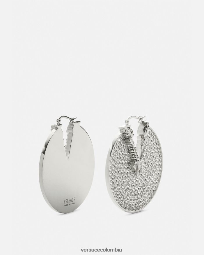 Estos aretes adornados con cristales, que toman su nombre de la deidad romana de la virtud y el valor, presentan el emblema Barocco V. Todos los productos de joyería de Versace no contienen plomo ni níquel. Todos los materiales son hipoalergénicos.