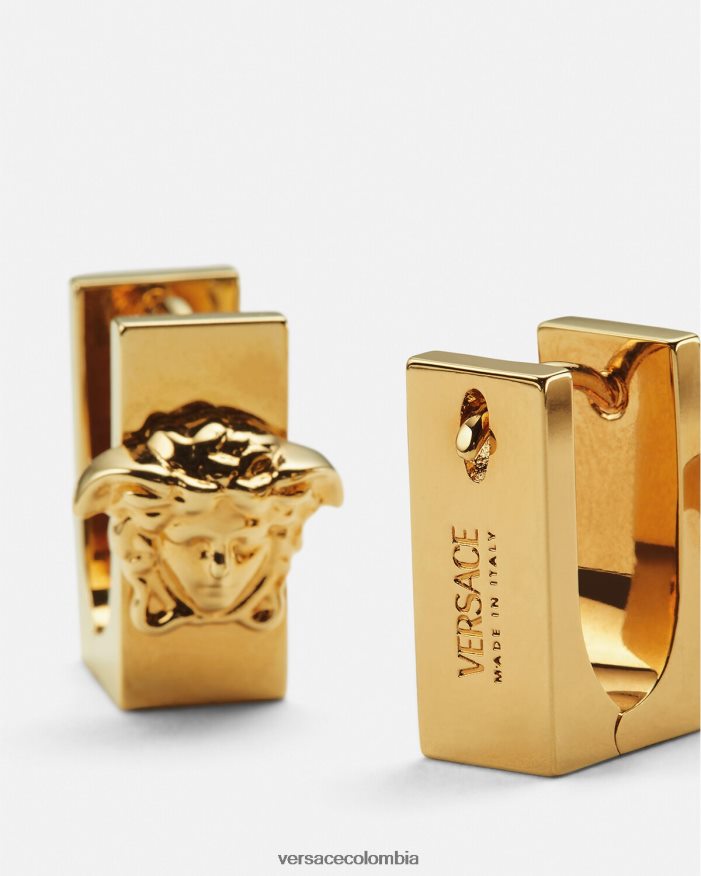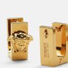 un par de aretes rectangulares de medusa con cierre de bisagra. Todos los productos de joyería de Versace no contienen plomo ni níquel. Todos los materiales son hipoalergénicos.