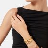 Un diseño muy versace, este brazalete tiene una inscripción con el logotipo calado. Todos los productos de joyería de Versace no contienen plomo ni níquel. Todos los materiales son hipoalergénicos.
