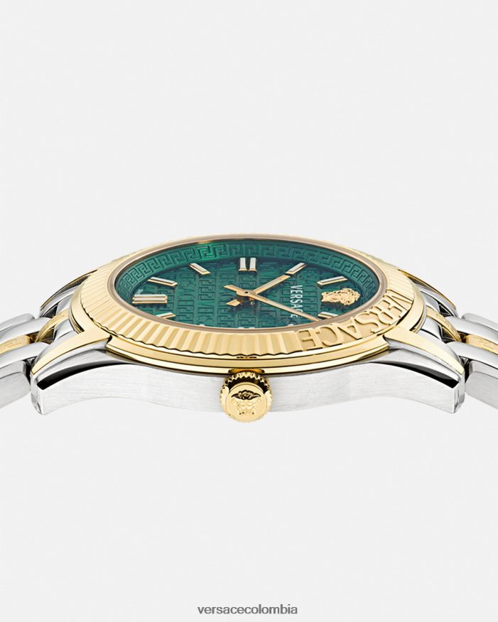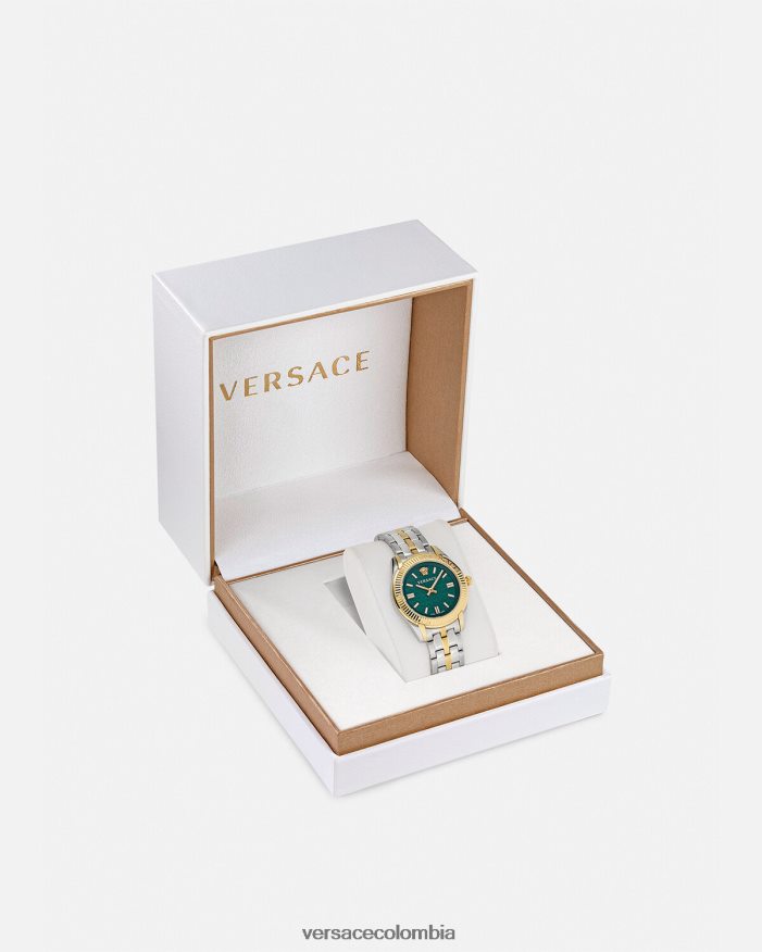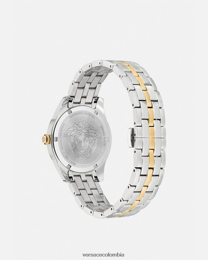 - caja: ip champagne y caja de acero inoxidable con letras versace en el anillo superior