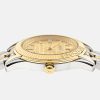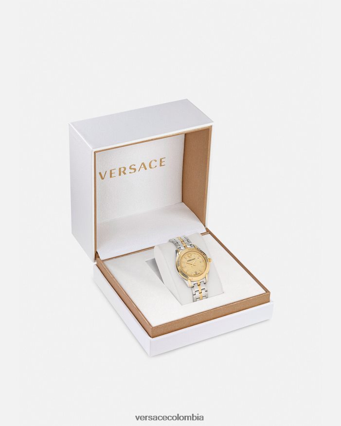 - caja: caja de acero inoxidable y color champán con letras de Versace en el anillo superior